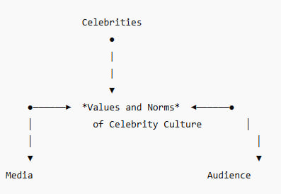 Based on the above explanation, the relationship between values and norms and the other components of celebrity culture, namely, celebrities, audiences, and media, can be outlined accordingly:
